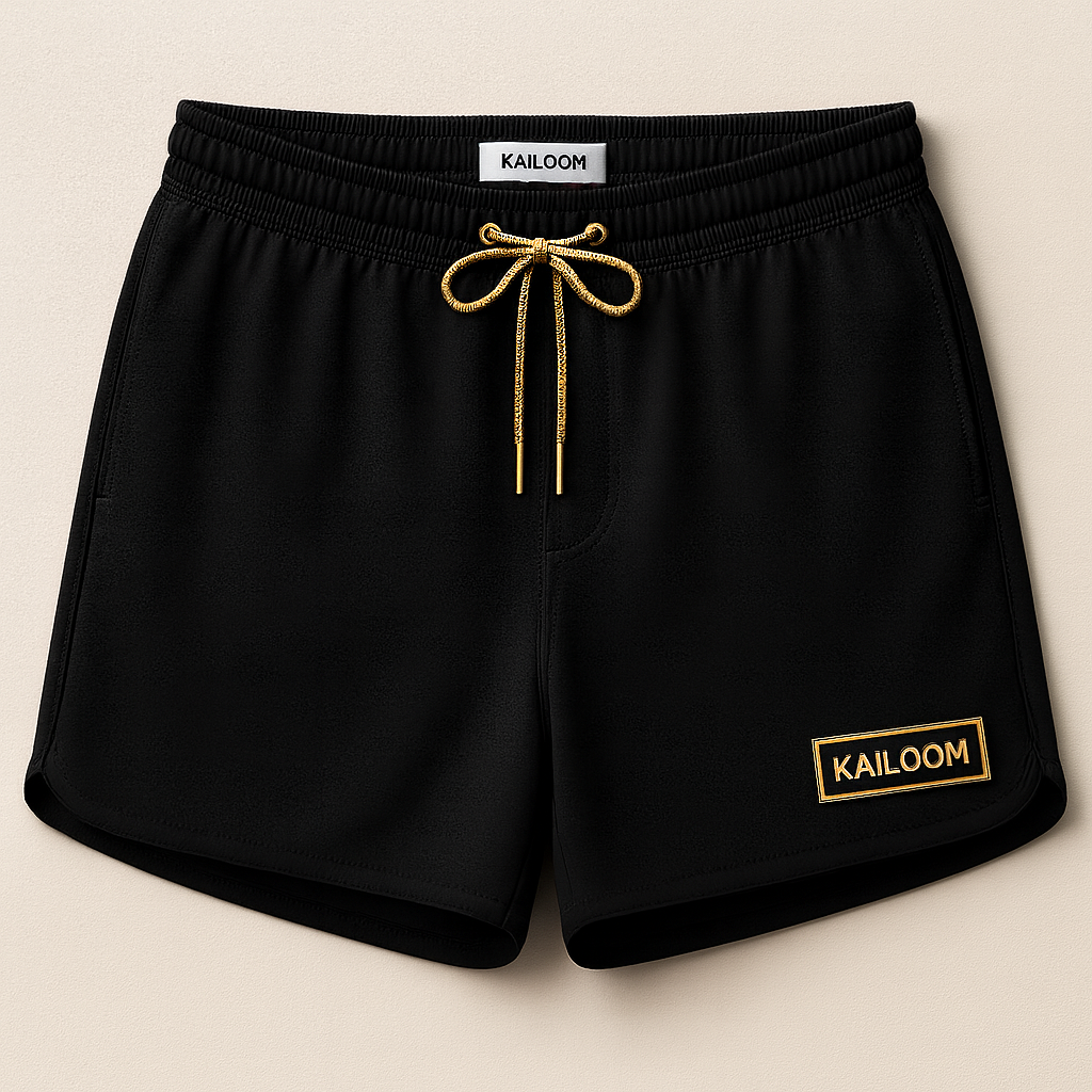 · Shorts: elastic waistband with tonal drawcord, curved hem, matte brushed gold aglets.