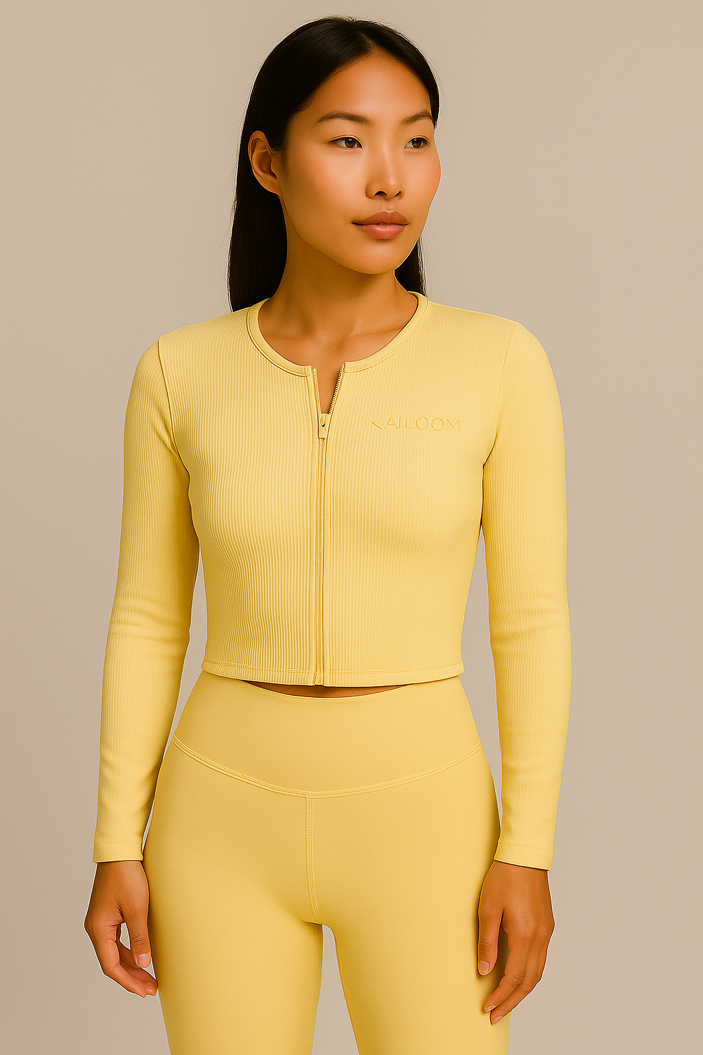 Crafted in DawnForm™ Ribbed, the Dawn Full Zip is the finishing layer to the Dawn Set. Cropped with a relaxed fit, it’s made from ribbed stretch fabric that moves with you without compression. A clean crew neckline and exposed zipper give it everyday utility, making it a layer that extends easily beyond the workout.